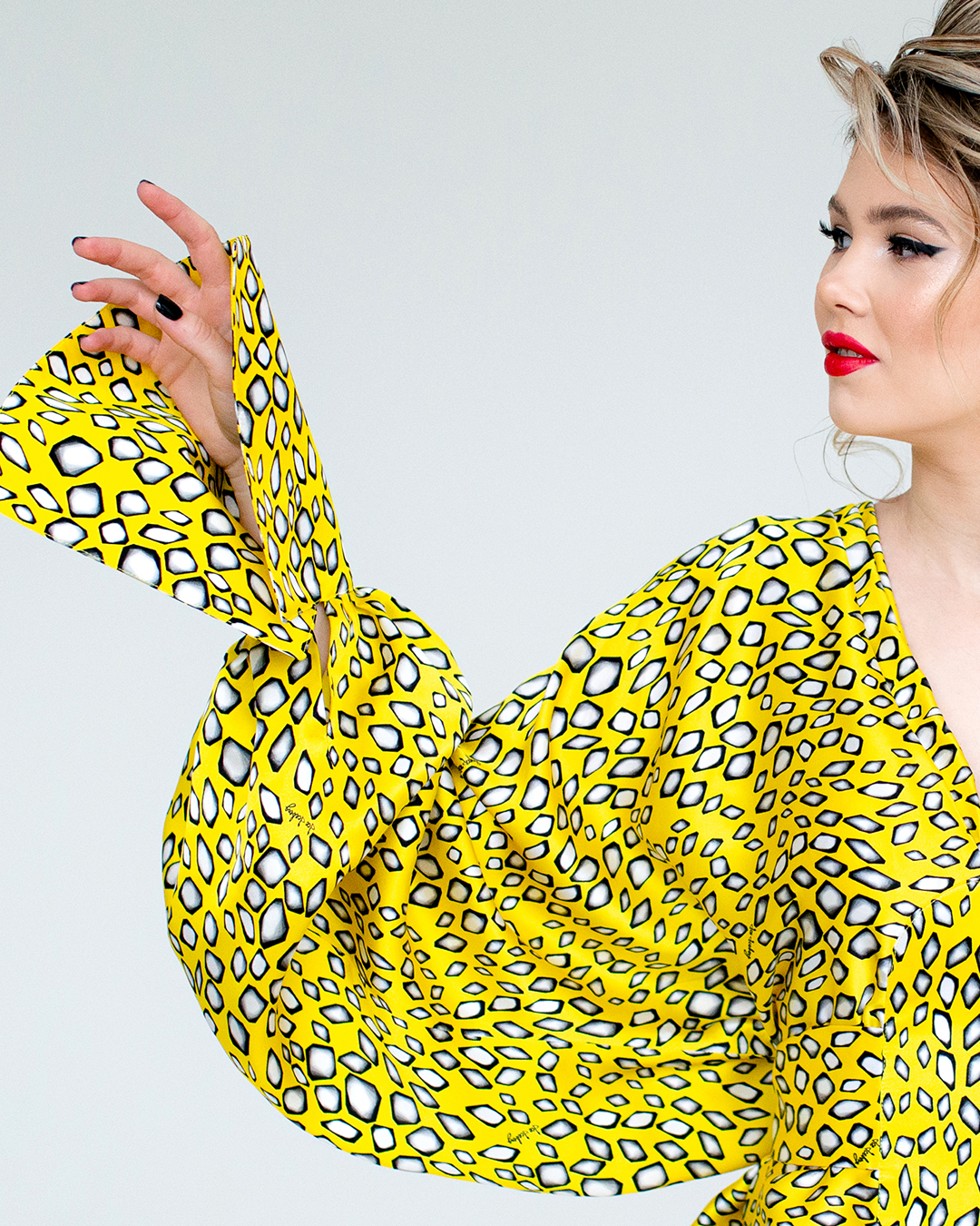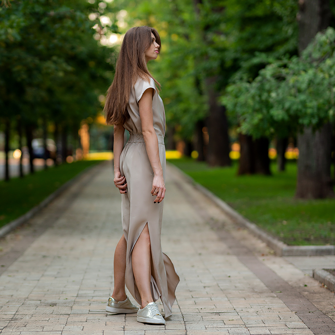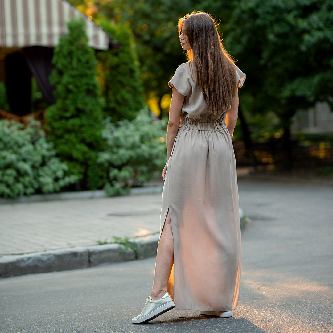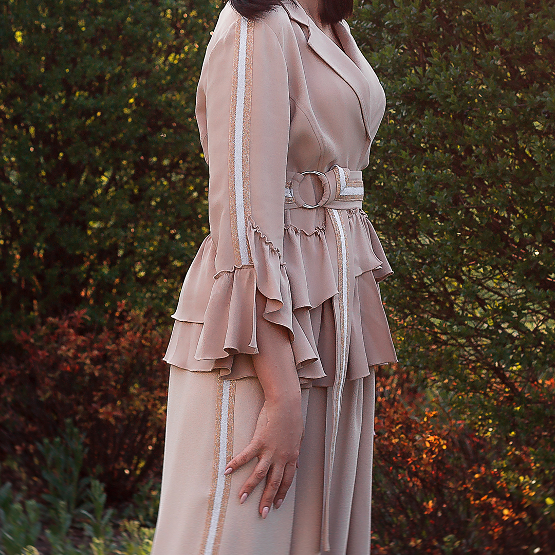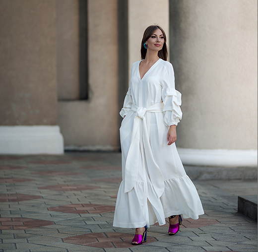 ✔ У платья модные, объемные рукава с возможностью регулировать их длину.