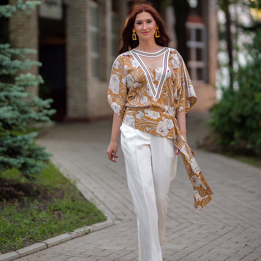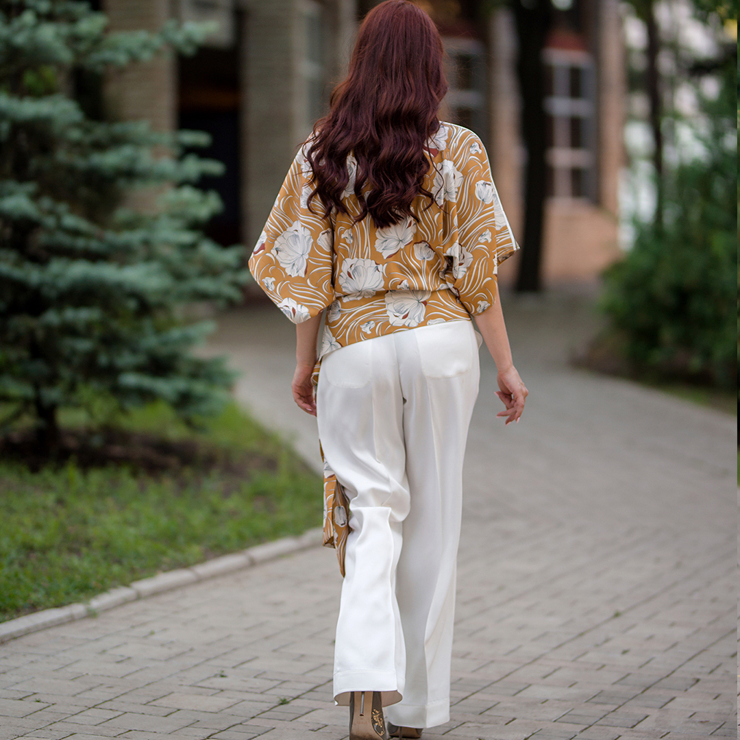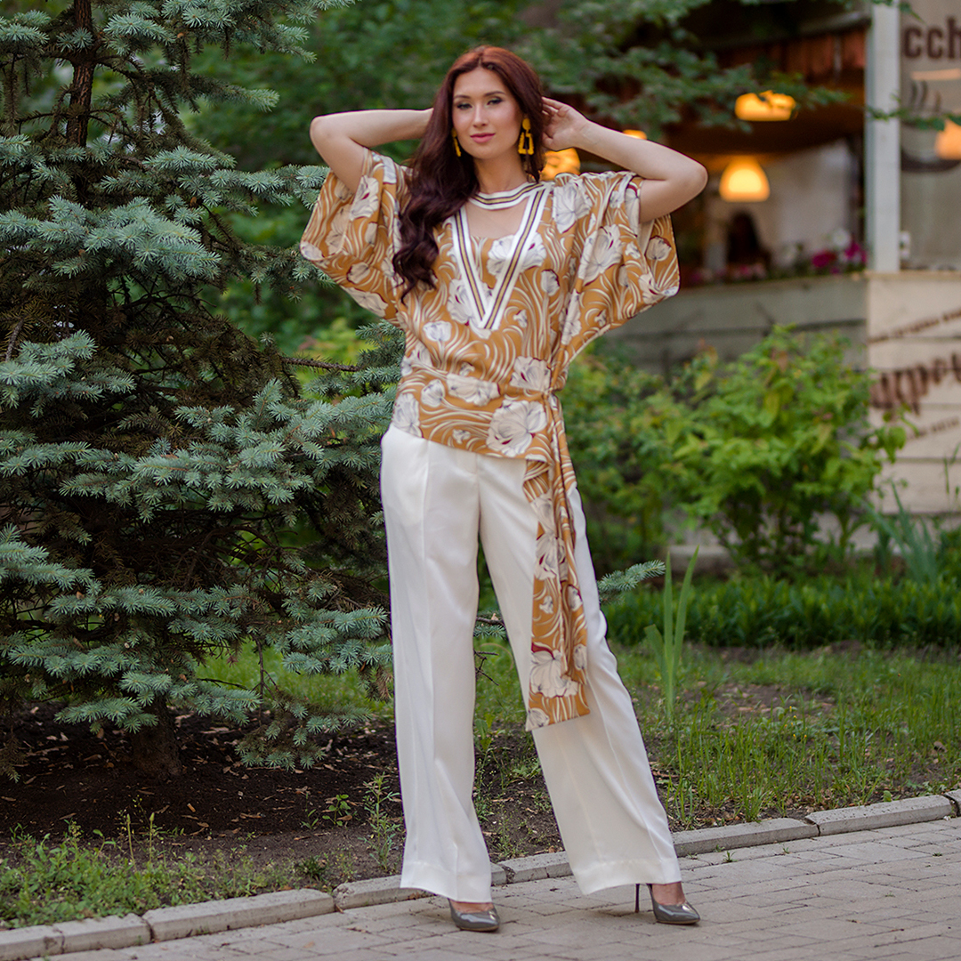 ✔ Ткань: шелковый поплин. Рукава: натуральный шифон.