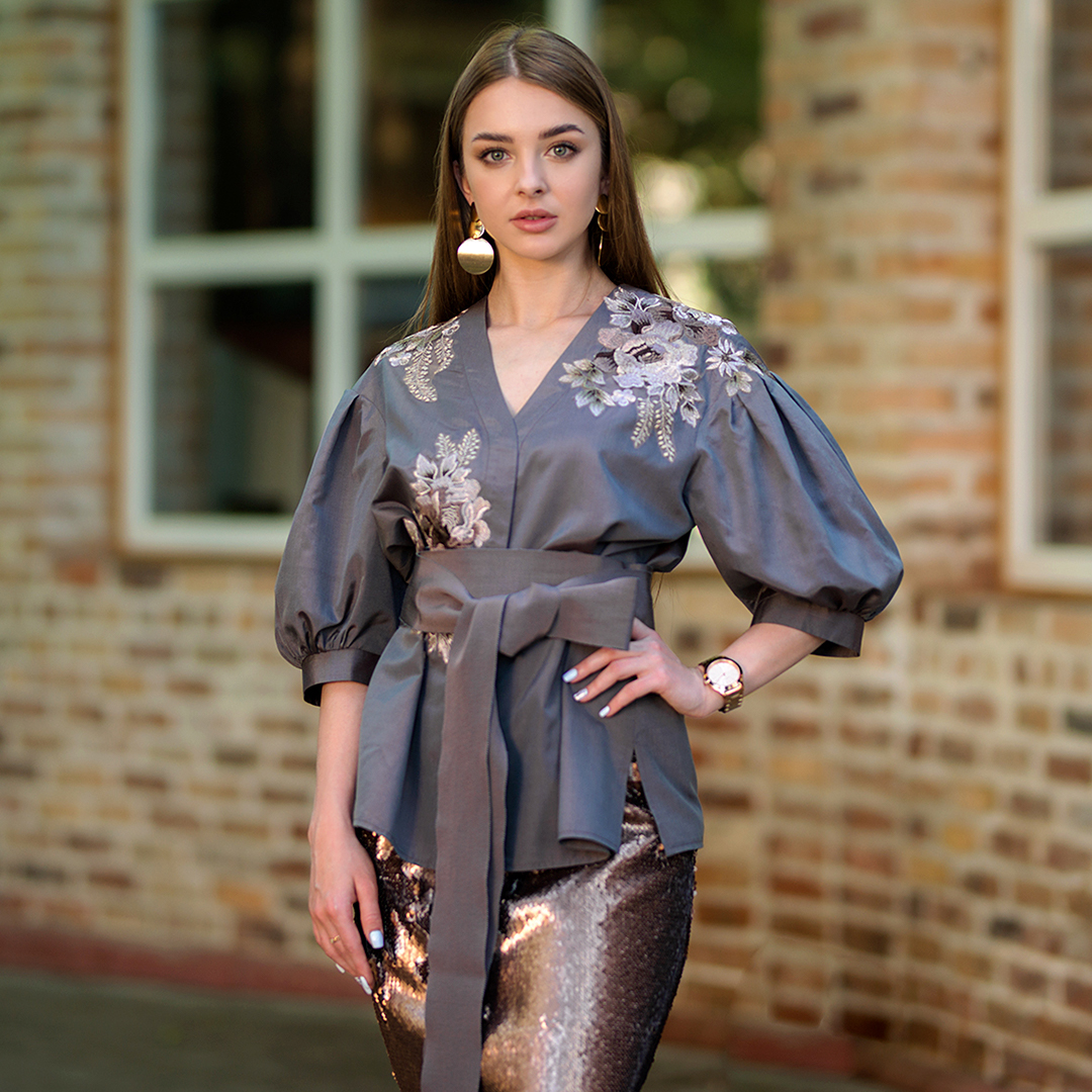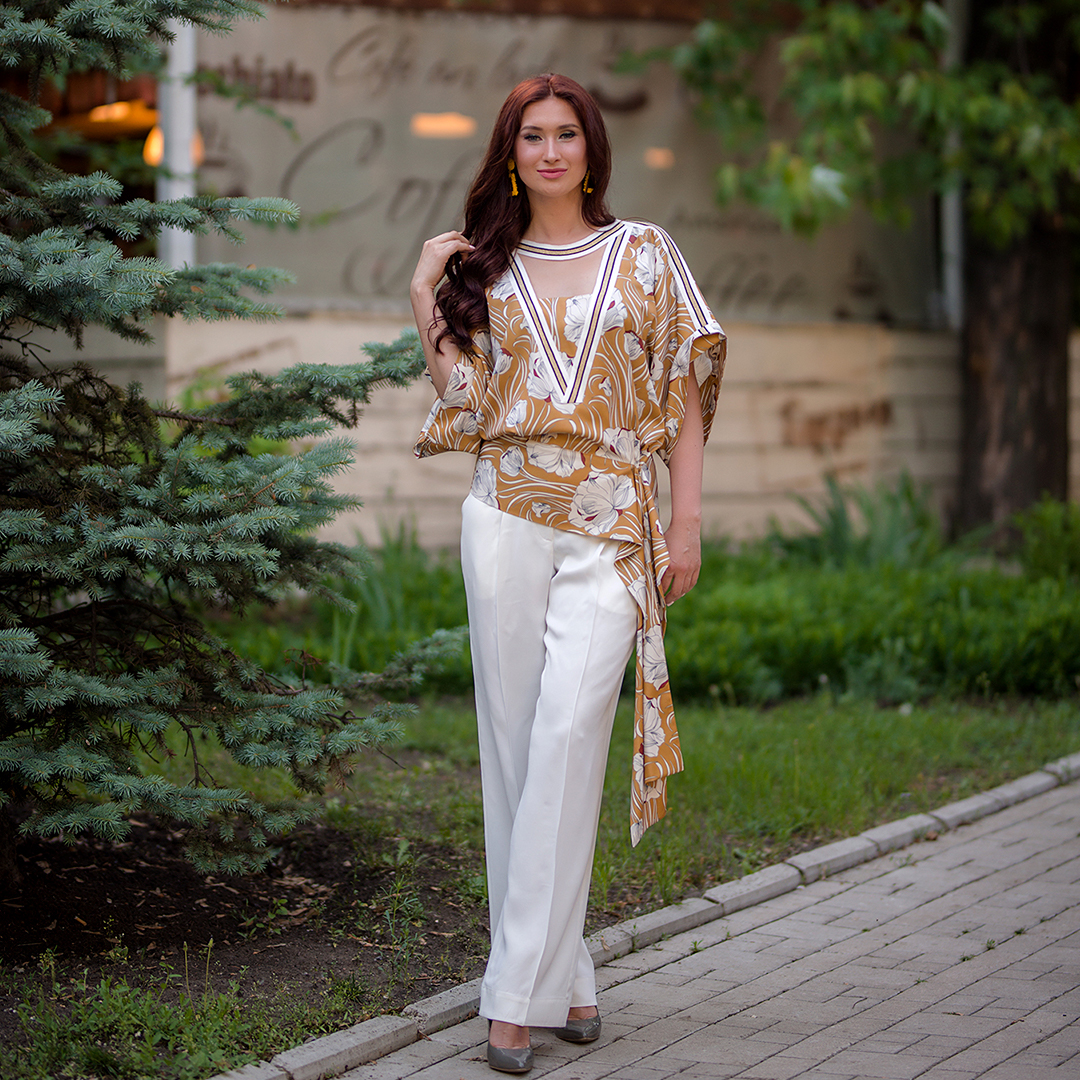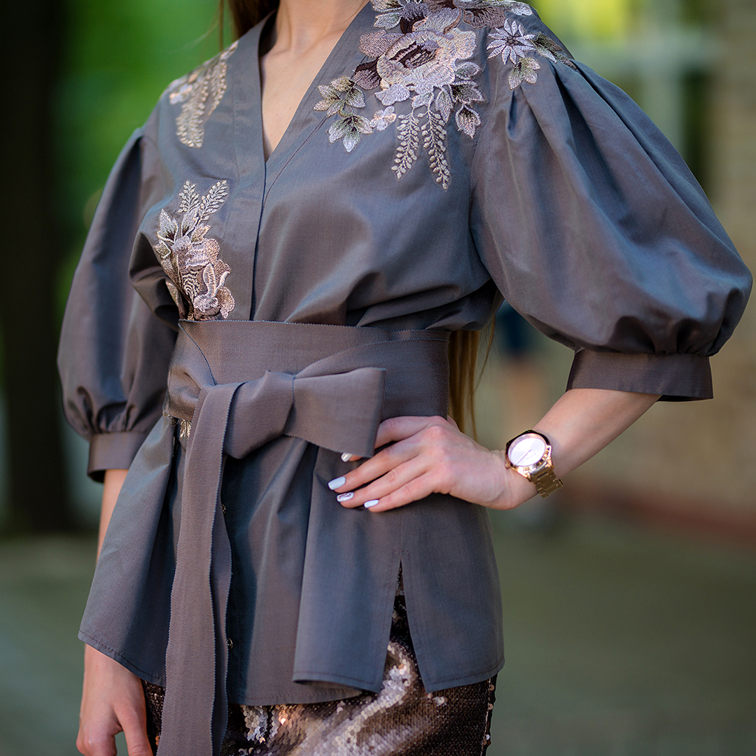 ✔ Ткань: шелковый поплин. Рукава: натуральный шифон.