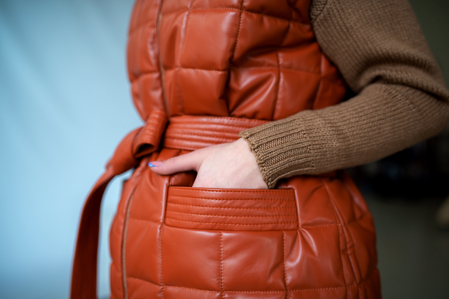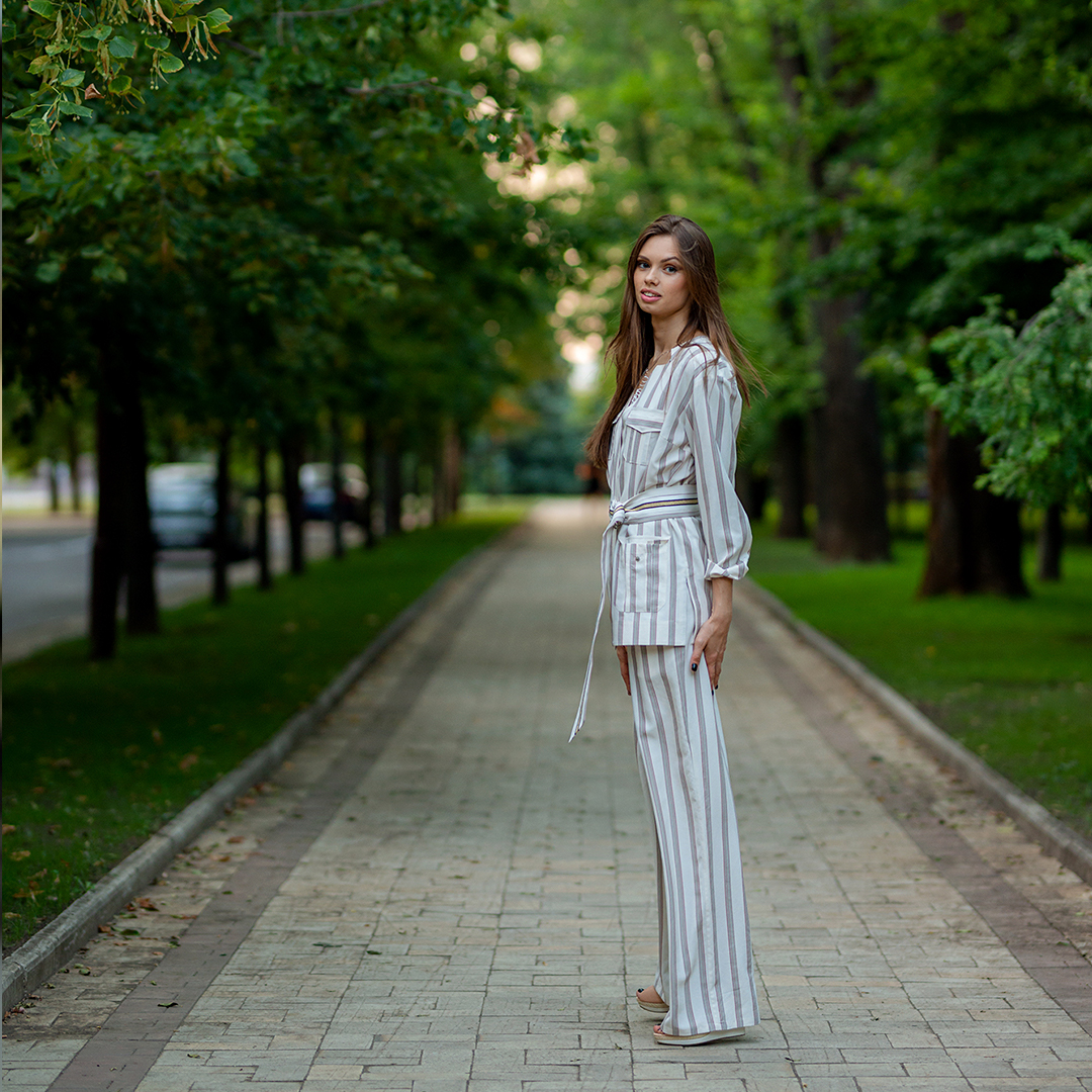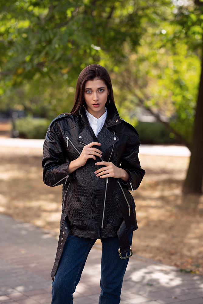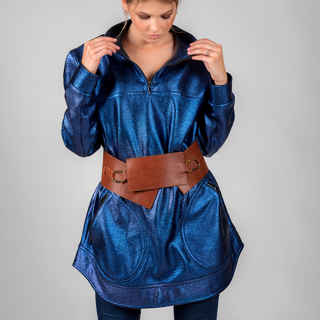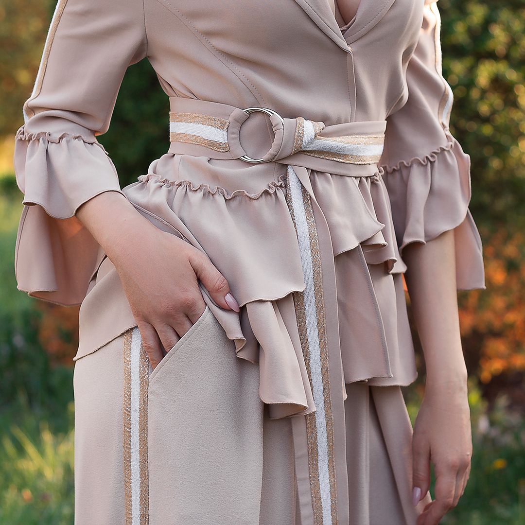✔ Множество интересных деталей: отстрочки, пояс, глкбокие, удобные карманы впереди декорированные молниями.